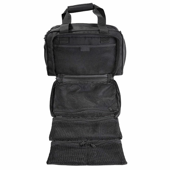 In addition to the main compartment, the Large Kit Bag features two side pockets, one complete with a roomy fold-out organizer panel of multiple zippered mesh pockets. This section can be perfect for storing small electrical items or wash kit when travelling.