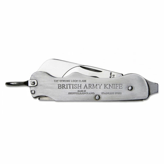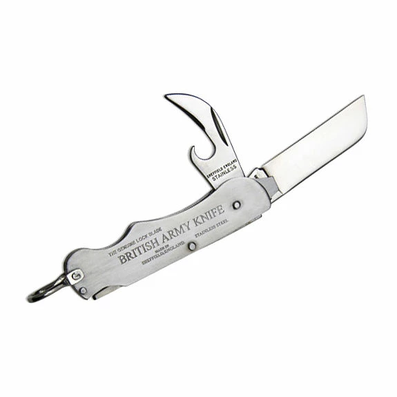 The British Army Knife features a heavy-duty sheepsfoot blade, as well as a tin-opener and integrated screwdriver. A tough shackle is fitted to the handle, allowing you to attach a lanyard. The handle proudly features the genuine ‘British Army Knife’ stamp.