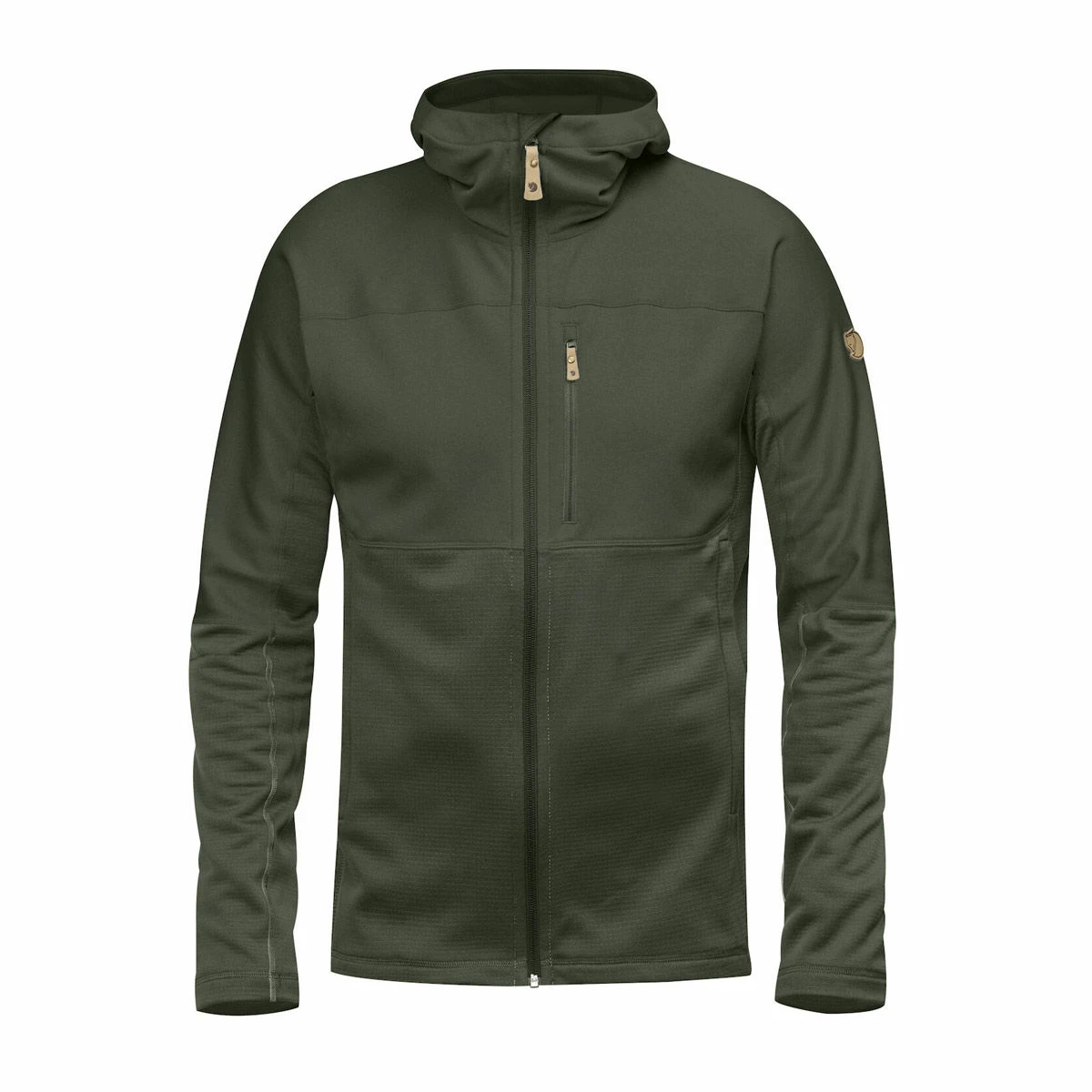 This fleece jacket benefits from a snug-fitting hood, one chest pocket and two hand pockets, all with zippers.