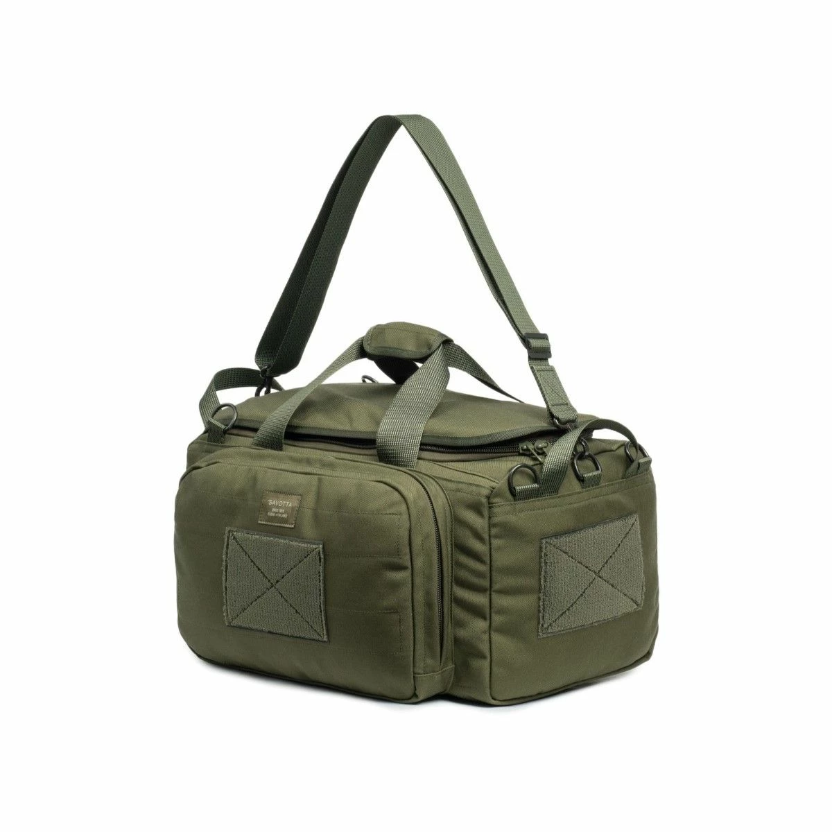 Savotta put extra effort into providing the best possible carrying experience. The length of the carry handles keep the bag snugly at a comfortable carry height, offering good control. Each end features a hauling handle to allow comfortable lifting during transport. Six steel D-rings are used to attach the included adjustable shoulder strap, offering various orientations to suit personal taste. The D-rings are also the attachment points for the optional padded shoulder straps.