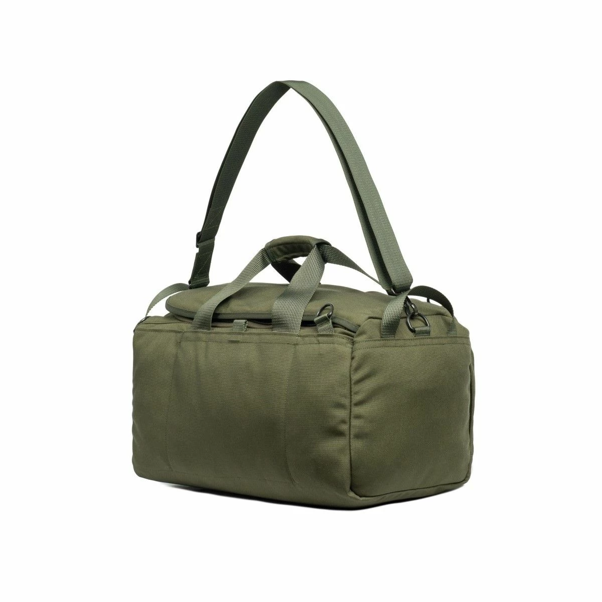 Built with expertise from high quality materials, this bag is made to endure a long life of service. The carry handles are made from a single length of 50 mm wide webbing which wraps around the bottom of the bag, sandwiched in between two layers of 1000D Cordura. Stress points are reinforced with double stitching and seams are finished with binding tape to prevent fraying. All load carrying buckles are steel, and will probably outlast the rest of the bag.