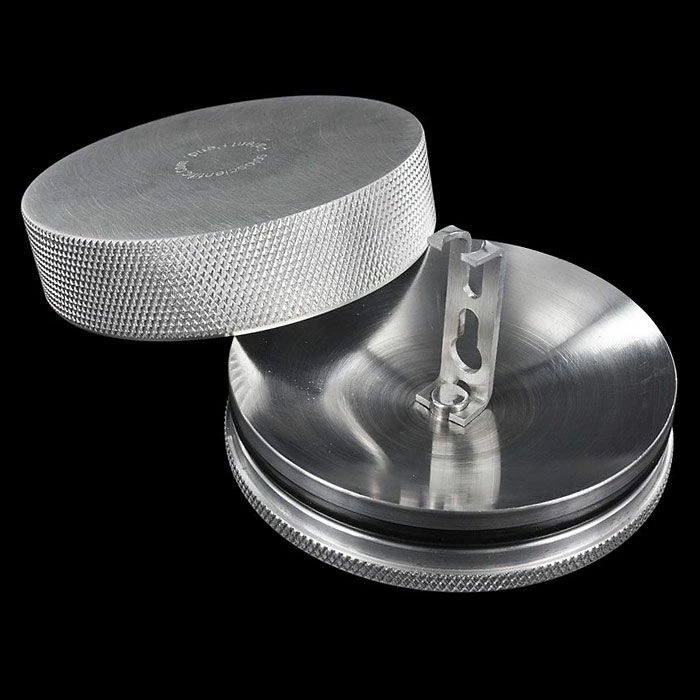 This tool works well with a wide range of natural tinder materials, as well as pieces of char cloth or fuel tablets. When not in use, the tinder arm can be securely stowed on the underside of the lid. The lid itself also functions as an emergency signalling mirror, thanks to its polished surface. Lastly, the outside of the Solar Fire Starter is knurled for grip.