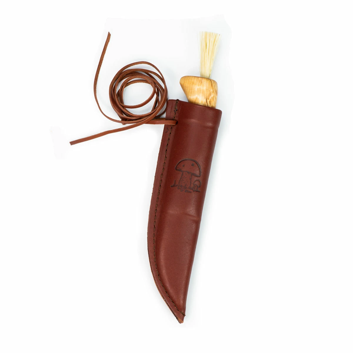 It features a tough, stainless-steel blade, and a handle made made from curly birch. A handy integrated brush is included for spore cleaning and it also benefits from a vegetable-tanned leather neck sheath.
